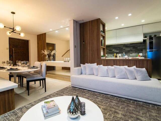 Living integrado com cozinha e área gourmet